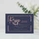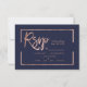 Rose Gold typographie sur personnalisable marine bleu rose or demi-cadre, et faux rose or géométrique bandes chic rsvp mariage, parfait pour mariage élégant, élégant,