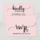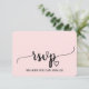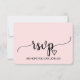 Cette carte de réponse RSVP de site web de mariage à calligraphie simple rose blush est parfaite pour un mariage élégant. Le design présente une police cursive fluide romantique et douce sur un fond rose pâle de ballet léger et délicat. Personnalisez la carte de réponse en ligne avec votre RSVP par date et adresse de site web de mariage. Si vos invités n'ont pas besoin de mot de passe de site web, vous pouvez remplacer le texte par un message court et doux pour vos invités ou une méthode de RSVP alternative.