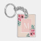 Jolie bague de clé rose vif avec rideau de fleurs rose et vert d'aquarelle. Doux, élégant et joli. Personnaliser avec l'initiale et la photo. Idéal pour un cadeau de fête des mères, un cadeau d'anniversaire ou un cadeau pour l'enseignant et les collègues.