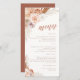 Ein elegantes Hochzeitsmenü mit kalligraphischem Schriftzeichen, das mit handgezeichnet Aquarellfarben-Rose, Pampas-Gras und Palmenblättern besticht.