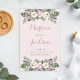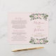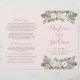 Nos programmes de cérémonie de mariages floraux boho vintages comprennent un agencement floral moody de roses romantiques, des fleurs de pivoines et d'anémones, de la verdure et des accents bohème rustique dans des tons riches de rose poussiéreux, rose mauve, cassis, blanc crémeux, vert mousse, gris et or sur une couleur arrière - plan rose rose pâle. Une palette de couleurs dramatique et rêveuse pour votre mariage d'automne ou d'hiver. Personnalisez le beau monogramme personnalisé, la fête de mariage, la cérémonie de mariage, et merci texte pour votre élégant jour de mariage rustique. Veuillez noter que ces programmes de feuilles arrivent à plat et nécessitent un pliage vers le centre.