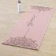 Eine moderne, pastellfarbene Rose, rosa Yoga-Matte mit Blumenmotiv-Mandala-Universum-Symbol und eine trendige Schriftzeichen-Schriftart namaste; für Ihre Yoga-Übungsteilnehmer oder Ihren Alltag! Modernes Design.