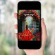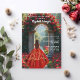Ein großer Marmorbogen mit rote Rosen und Blume. Ein Mädchen mit einem roten und goldenen Kleid, das einen Tiara trägt. Personalisieren und fügen Sie einen Namen und Details.