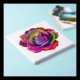 Eine atemberaubende digitale Abbildung einer Rose mit lebhaften Regenbogenfarben, die Rot-, Rosa-, lila-, Blau-, Grün- und Gelbtönen kombiniert. Das aufwändige Blütendesign hebt sich vor einem schwarzen Hintergrund ab und schafft ein faszinierendes und auffälliges Kunstwerk, das sich perfekt für Dekoration oder kreative Inspiration eignet.