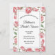 Gerahmt mit zarten Aquarellrosen und üppigen grünen Blätter empfängt Sie diese elegante Einladung zu einem schönen Brautparty. Der schlichte graue Rahmen schafft einen perfekten Raum für Ihre Veranstaltungsdetails, während das romantische Blumendesign einen charmanten, femininen Ton Set. Der anmutige gebogene Text an der Spitze lädt Liebende ein, an diesem besondere Anlass teilzunehmen, um die zukünftige Braut zu ehren.