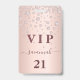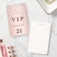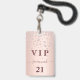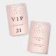 Ein modernes, stilvolles und glamouröses Abzeichen für eine 21. Geburtstagsfeier (oder jedes Alter). Ein Imitat Rose Gold metallische Hintergrund mit Rose Gold Imitate Diamanten. Der Name ist mit einer modernen dunklen Rose goldfarbenen handgeschriebenen Stil-Skript mit Swashes geschrieben. Mit dem Text: VIP Nummer 21 ist in goldener Farbe geschrieben. Um die Swashes behalten, löschen Sie nur den Beispielnamen, verlass die Leerzeichen oder Emoji's vor und nach dem Namen.