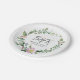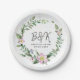 Elegante, moderne Aquarellfarben illustrieren den Blumenkranz eines zarten rosa Hundes mit Rose mit individuell anpassbaren Hochzeitsmonogrammen. Farbenfrohe kleine Punkte Hintergrund für festliches Aussehen.