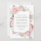 Des roses roses irrésistibles et des fleurs de jardin mélangées avec des feuilles et des branches à la traîne encadrent les bords de ce faire-part de mariage floral d'aquarelle magnifiquement féminin. Fleurs mélangées délicates en rose et blanc sont mélangées entre les roses ajoutant une texture et un charme agréables. Personnalisez avec vos détails mariages.