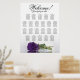 Elevez l'élégance et le raffinement de votre réception de mariage avec ce magnifique tableau de 22 places. Le design floral moderne présente un rose violet royal surprenant posé horizontalement, se reflétant élégamment dans une piscine d'eau sereine. Le tableau peut accueillir jusqu'à 220 personnes avec une disposition classique de 10 places par table. Le titre est écrit en écriture calligraphique stylisée, accueillant vos invités et les guidant à leur place. La partie inférieure offre suffisamment d'espace pour les noms du couple et la date du mariage, ajoutant une touche personnelle à votre décor. Ce tableau de sièges exsume le charme, la grâce et le glamour, et est la façon parfaite d'assurer un agencement de sièges lisse et élégant pour vos invités.
