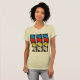 Das Material ist eigentlich gute Qualität, der Stoff ist nur etwas verzogen so dass der Drück leicht schief aussieht. Der Druck ist gute Qualität, habe das T-Shirt schon einige male gewaschen.