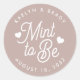 Minzige, frische Gastgeschenk Hochzeit-Aufkleber sind mit einem weißen Schriftzeichen versehen, das mit Herzensanhängen auf einer staubigen Rose mit rosa taupe Hintergrund betont wird. Personalisieren Sie mit Ihren Namen und Hochzeitstermin.