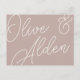 Designed to match our Script Watermark wedding invitations, this elegant typography based RSVP postcard is perfect for traditional mail-in RSVPs. Design features oversized script lettering at the top, in tone on tone shades for a watermark effect. Personalize with your desired RSVP date and custom accept and decline wording in classic serif lettering aligned at the lower right. Our Rose Taupe colorway is an elegant mix of earthy neutral pinks, featuring warm white and classic white lettering on a rosy taupe background.