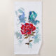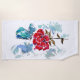 ein traditionelles Aquarellwerk einer rote Rose und ein blauer Schmetterling auf einem Badetuch