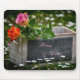 Rote und orangefarbene Rose in einer Holzkiste in einem Bereich der Glossare Persönliche Nachricht auf der Seite der Tafel