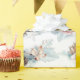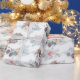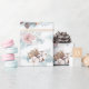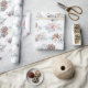 Hübsches Holiday Packpapier aus Weiß, mit blassblauen Krawatte und Aquarellbildern einer pastellrosa Rose mit Blattwerk und Pinienkegel. Matching Produkte sind erhältlich.