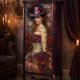 Diese verzierte Komposition zelebriert das Drama der Viktorianischen Hochmode durch ein atemberaubendes Zusammenspiel von reichen Texturen und Juwelentönen. Das Kunstwerk basiert auf einem exquisit detaillierten goldenen Korsett, das mit tiefer Stille und königlichen lila Rose geschmückt ist, wobei jedes Blatt mit bemerkenswerter Präzision dargestellt wird. Der Hut, ein Meisterwerk aus Pflaumenseide und schwarzer Spitze, kront das Stück mit raffiniertem Drama. Der Künstler demonstriert außergewöhnliche Geschicklichkeit bei der Erfassung von Stofftexturen - vom leuchtenden Seidenschimmer bis hin zur zarten Durchsichtigkeit des Tulls. Der stimmungsvolle Effekt des Hintergrundes schafft Tiefe und unterstreicht gleichzeitig die dramatische Farbgeschichte von Bordeaux, Pflaume und Champagnergold. Perfekte Farbpaare: Royal lila und Champagner Gold Deep Crimson und antikes Elfenbeinseide und Bronze Bronze Weinrot und Perlweiß Gotische Schwarz und Vintage Rose Captivating Design Elements: Dramatische Rose Arrangements Intricate Korsett detailliert Moody-atmosphärische Beleuchtung Luxuriöse Stofftexturen Möbel Wandwandeln: Boudoir-Bildschirm Viktorianisch Dressing Fassaden Schmuckkasten Oberflächen Vanity Tisch Fassaden Armoire Türverkleidungen Dieses Design verwandelt Möbel in dramatische Brennpunkte, die eines Pariser Opernhauses würdig sind. Die farbenfrohe Farbpalette und die theatralische Komposition machen jedes Stück zu einer atemberaubenden Note, die sich hervorragend eignet, um den Ankleideräumen, den Pullräumen oder den eleganten Zimmern ein romantisches Drama hinzuzufügen. Die Aufmerksamkeit des Kunstwerks auf historische Details und luxuriöse Elemente hebt gewöhnliche Möbel zu außergewöhnlichen Gesprächsstücken auf, die das Wesen der Viktorianischen Haute Couture erfassen und gleichzeitig zeitlos ansprechend bleiben. Copy