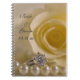 Erstellen Sie ein einzigartiges Gästebuch oder ein Beratungsbuch für die Neuvermählten, wenn Sie das hübsche White Rose, Ring and Pearls Wedding Spiral Notebook mit den Namen der Braut und des Bräutigams und dem Datum ihrer Heirat personalisieren. Dieses klassische, geblümte Brautbuch zeigt ein Blumenfoto einer weißen Rosenblüte, einer weißen Perlenhalskette und einem Ring aus Diamant-Verlobung.