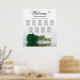 Ce somptueux tableau de sièges mariage contient 9 tables et présente un design romantique avec un seul rose à long tige vert émeraude profond reposant sur son côté et réfléchissant dans un bassin d'eau. Le titre, "Bienvenue - s'il vous plaît trouver votre table," est affiché au-dessus du nom du couple et de la date du mariage. Avec des places pour 90 personnes et 10 places par table, ce tableau offre suffisamment d'espace pour que les clients puissent trouver facilement leur place. Le design sophistiqué, élégant et chic ajoute un élément de grâce et de classe à votre réception de mariage.