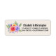 Adressetiketten mit einem fantasievollen Blumenstrauß mit Aquarellfarben-Rose. Stilvoll, skurril und kreativ. Ein Bündel von Rose in Rosa, lila und Gelb. Mit viel Grün und Blätter in Grün, Rosa, lila und Blau. Hintergrund ist eine cremefarbene Champagnerfarbe.