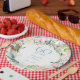 Mit einer zarten Aquarellgarage kann diese schicke botanische Papierplatte zum 60./75. Geburtstag mit Ihrem Diamanten- oder Platinjubiläum in elegantem Diamantblauen Text personalisiert werden. Entwickelt von Thisisnotme©