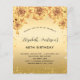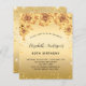 Eine moderne, stilvolle und glamouröse Einladung für eine 40. Geburtstagsparty - Ein Imitat goldener Hintergrund mit Imitaten goldenen Glitzer Staub, Rose, Blumen. Der Name ist mit einem modernen handgeschriebenen Stilskript geschrieben. Personalisieren Sie Ihre Party-Daten und fügen Sie sie hinzu.