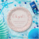 Süß, weich und mühelos elegant. Dieses roségoldene „Oh girl“-Design zeigt eine saubere blassrosa Mitte mit zarter Schreibschrift und einem schimmernden Konfettirand am Rand. Es wurde entwickelt, um Ihren Babyshower-Tisch mit moderner neutraler Glamour und fotogerechtem Stil zu erheben.
