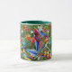 Ursprünglicher Entwurf der feinen Kunst bunter Rosella Papageien von Australien durch Designer Carolyn McFann zwei des schnurrenden Katzen-Studios auf einer Qualität und der kundengerechten Weckerkaffee-Tasse für Vogelliebhaber.