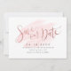 Handgeschriebenes Save the Date Skript in Imitaten Rose goldene Folie Farbe auf rot rosa Aquarell Hintergrund, elegant und stilvoll, großartig modern einfach personalisiert speichern die Dattelkarten. Sehen Sie sich alle passenden Stücke in der Sammlung an.