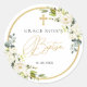 Dieses Design zeigt wunderschöne weiße Rose mit grünem Blattwerk im Aquarellstil und Imitat mit goldenem Kreuz.