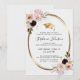 Blush Pink Roses Grad Cap Gold Metallic Frame Graduation Party Einladung... Unsere Feminine Blues Graduierungsparty lädt mit Bouquets von wunderschönen rosa Rosen aus Rosen, die rund um einen ovalen Rahmen aus goldener Metallic auf antikem weißem Hintergrund rund um eine goldene Folie gebogen sind. Im Rahmen befindet sich eine metallische goldene Kappe und eine Tassel, gefolgt von dem Einladungstext in Sans Serif und Script Typografie. Alle Texte können auf der Personalisierungsvorlage leicht überarbeitet werden.