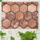 RosengoldGlitter und -folie schmücken diese geometrischen Hexagone.