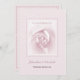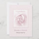 Personalisieren Sie diese romantischen rosa Rossheirat Einladungen, indem Sie die Namen der Braut und Bräutigam. Die Vorderseite ist ein Foto einer rosa Rose mit Morgenabwurf und gerahmt in digitalen Spitzen und pastellfarbenen filigranen Wirbel.