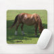 Mousepad mit einem Foto eines braunen Pferdes, das im Schatten Gras isst. Personalisierbar.