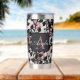 Die Botanische Boho Elegant White Roses Pink Blätter Monogram Insulated Tumbler, eine Fusion von Eleganz und Natur inspiriert Charme. Vor einer schwarzen Kulisse weben komplexe Weinreben einen raffinierten Wandteppich, während zarte, weiße Rosen und rosa Blätter mit blühender Schönheit blühen. Dieses botanische Meisterwerk besticht durch boho-schicke Farben und eine erfrischende Mischung aus zeitloser Eleganz und zeitgenössischem Flair. Personalisieren Sie es mit Ihrem Monogramm für eine wirklich maßgeschneiderte Touch. Schlucken Sie stilvoll und behielte Sie Ihre Getränke bei der perfekten Temperatur mit diesem atemberaubenden Schuster, der die Schönheit der Natur in jedem Schluck zelebriert.