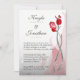 Invitations faites sur commande élégantes de mariage de glace et du feu que vous pouvez personnaliser. Ce modèle fait sur commande unique et artistique de faire-part de mariage dépeint la passion : deux roses rouges de belle aquarelle peinte à la main de tiges argentées s'entrelaçant au-dessus d'un arrière - plan du feu et de glace. Catégorie : idées personnalisées de thème de mariage du feu et de glace ; modèles modernes de faire-part de mariage du feu et de glace. Couleurs : argent rouge-foncé, de faux et blanc.