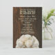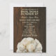 Une invitation nuptiale de douche comportant une image des roses blancs en bas au-dessus d'un arrière - plan de barnwood de brun foncé. Personnalisez le texte avec des détails de votre occasion.