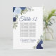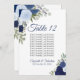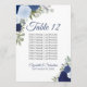Ces belles cartes de numéro de table mariage présentent un design chic boho élégant avec des roses d'aquarelle peints à la main dans les tons bleu poussiéreux, indigo et marine. La carte comprend une liste de dix noms afin que vos invités aient encore plus de facilité à trouver la bonne table. Disponible dans une variété de tailles pour différentes utilisations.