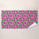Serviette sertie dans un motif de roses d'aquarelle rose fuchsia profond à pastel avec des feuilles dans les tons vert émeraude
