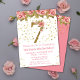 Pink Roses Floral 7. Geburtstagsfeier Einladung für ein 7-jähriges Mädchen mit modernem Drehbuch und Gold Glitzer.