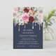 Make a bold and artistic statement with this unique wedding invitation featuring vibrant, colorful roses cascading from the top with a stylish dripping paint effect. Set against a rich blue background, the design beautifully blends romance with modern creativity, giving your guests a stunning first impression of your special day. The coordinated artwork appears on both the front and back, creating a cohesive and striking look....