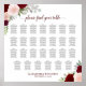 Ce beau tableau de 27 places mariage présente un design boho chic rustique et floral avec des roses aquarelles peints à la main dans les tons bordeaux, rouge et rose roux, ainsi que des sprigs d'eucalyptus feuilles et jardin verdoyant. L'aménagement traditionnel dispose de places assises pour 270 personnes avec 10 places par table, et un titre de calligraphie en dentelle "s'il vous plaît trouver votre table". Il y a un espace pour les noms du couple et la date du mariage en bas. Excellente façon d'ajouter beauté et style à votre réception de mariage tout en facilitant pour vos invités à trouver leurs sièges.