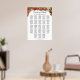 Faites en sorte que vos invités trouvent facilement leurs tables assignées à votre réception de mariage avec ce magnifique tableau de 23 places. Il présente une bordure de roses victoriens et d'autres fleurs vintages dans des couleurs d'automne riches et profondes, y compris le rouge, le rose corail, l'or, la prune et l'orange. Idéal pour un mariage de automne ou un mariage avec un thème de couleur bordeaux. Peut accueillir 230 convives.