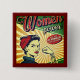 Unique Rosie the Riveter Design button with the words " Woman Power" in cool letters.