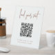 Für Hochzeitsgäste oder Veranstaltunggäste ist es einfach, mit diesem QR-Podestschild ihren Platz zu finden. Oben erscheint "Sitz suchen" mit kurzen Anweisungen. Geben Sie die URL für Ihre Sitzbelegung ein, und der QR-Code wird aktualisiert. Die Gäste können den Code scannen, um leicht ihren Platz zu finden.
