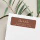 Diese einfachen und eleganten Rücksendeadressen-Aufkleber sind so konzipiert, dass sie unseren modernen handgeschriebenen Hochzeitsfotos gerecht werden. Ein schönes typografisches Design mit minimalistischem Ambiente, mit modernen handgeschriebenen Schriften und klassischen Serifenschriften auf Terrakotta-Rosthintergrund.