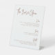 Mit diesem schlichten und eleganten Schild mit der Terrakotta-Rostschild auf weißem Hintergrund können Sie Ihre Hochzeitsmenüauswahl oder Ihre Bar im modernen Stil anzeigen. "Die Bar ist offen" oder Ihr eigener Header erscheint oben in der modernen Schrift-Schrift. Personalisieren Sie Ihre Menüpunkte unten, rechts ausgerichtet, mit drei Überschriften für Bier, Wein und Spirituosen - oder Ihre Textauswahl.