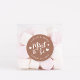 Auf der Gastgeschenk Hochzeit-Aufkleber in der Sonne "mint to be" in weißem, handgeschriebenem Schriftsatz mit Herz, auf einem Rosthintergrund im Erdton. Personalisieren Sie mit Ihren Namen und Hochzeitstermin.