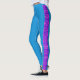Ein Paar blaue Leggings mit lila Rose auf der Seite.