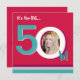 Eine moderne rote und aquamarine 50. Geburtstags-Party Einladung entwarf, ein Foto des Geburtstagsmädchens hinzuzufügen. Emailen Sie mich bitte, wenn Sie die Hilfe benötigen, die Ihren Entwurf besonders anfertigt.