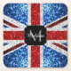 Rot-blaue Glitzern, Monogram Rechteckiger Pappuntersetzer